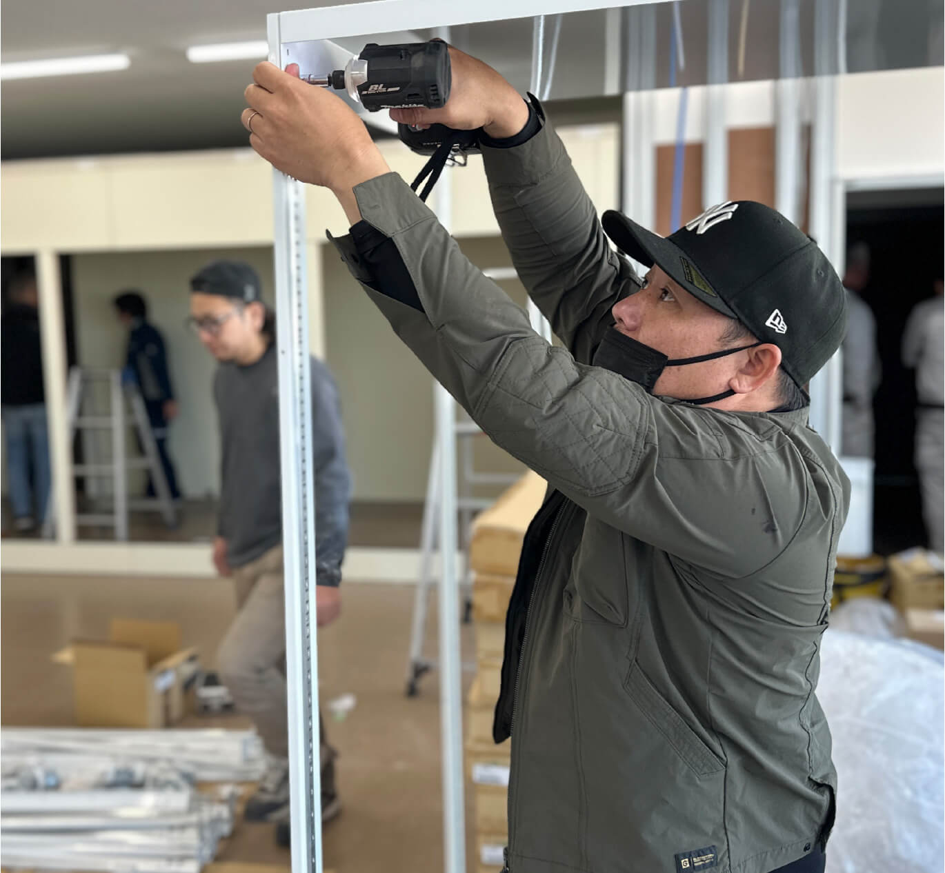 作業中は大変だけど、思い通り綺麗に仕上がるとめちゃめちゃ満足感ありますよ!一度取り付けたらそのお店で7年ぐらいは使ってもらえるので、やりがい大きいです。